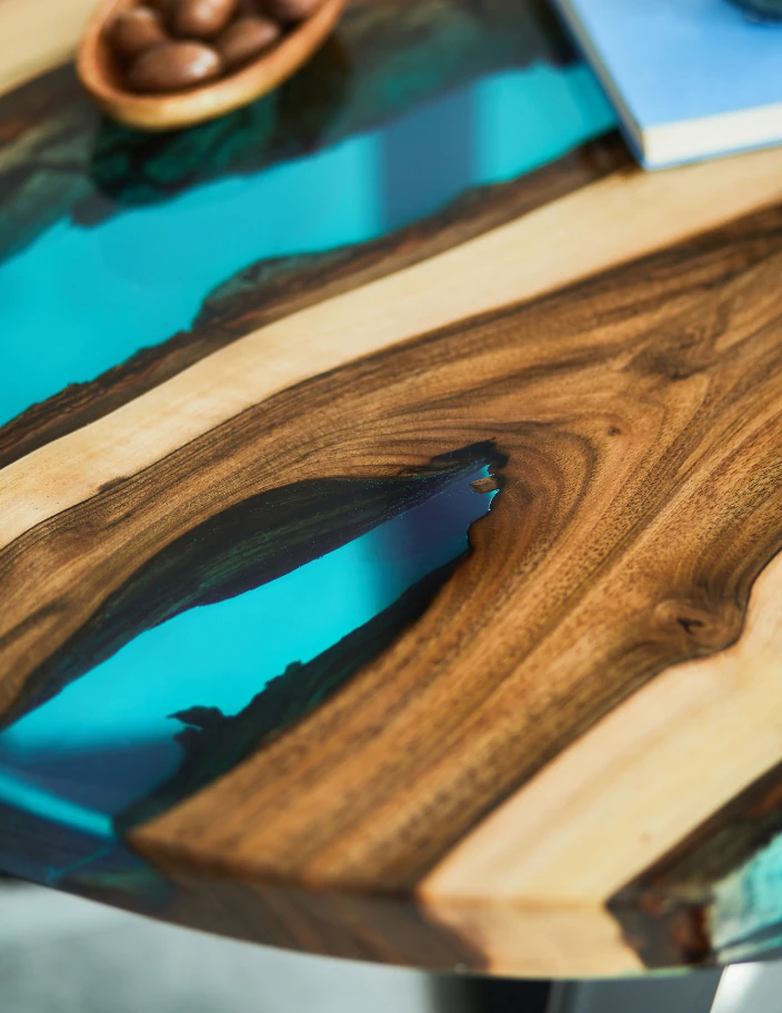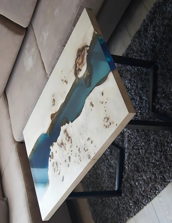 Et håndlaget salongbord med epoksyharpiks kombinerer miljøvennlighet og en unik stil som gjenspeiler eierens smak.