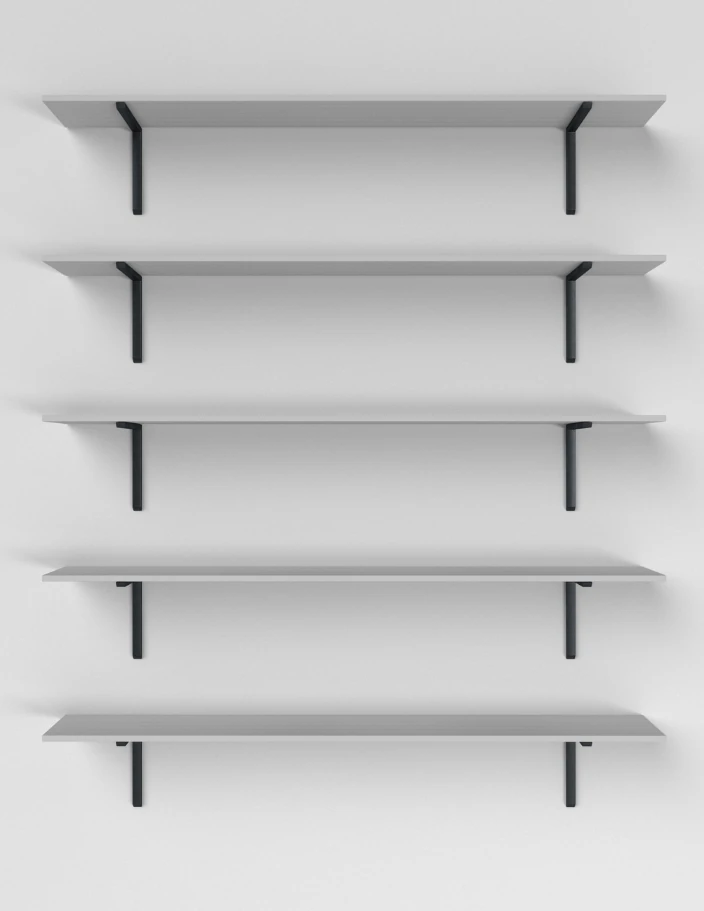Vi har et bredt utvalg av monteringssystemer for hyllene dine, inkludert både åpne og skjulte alternativer.