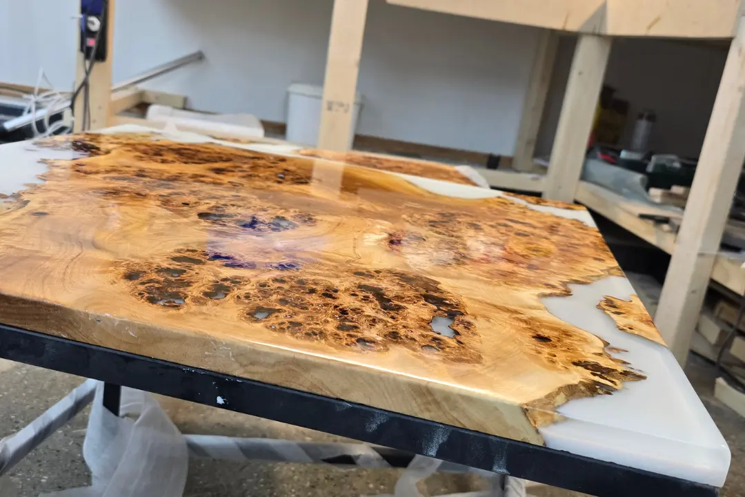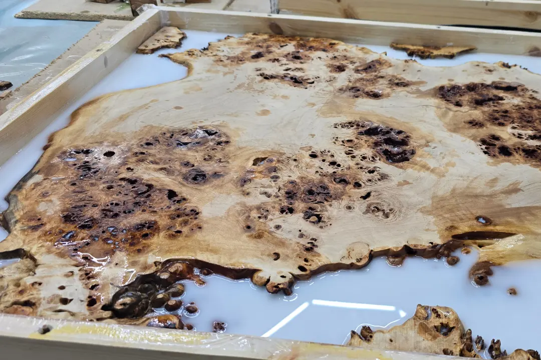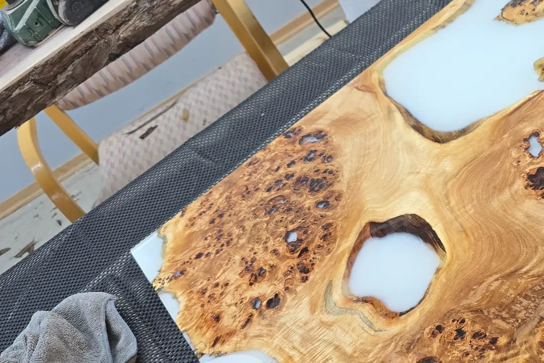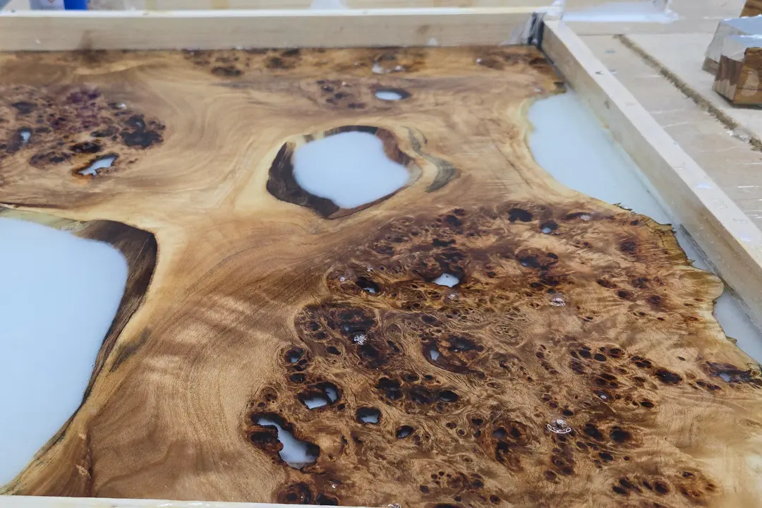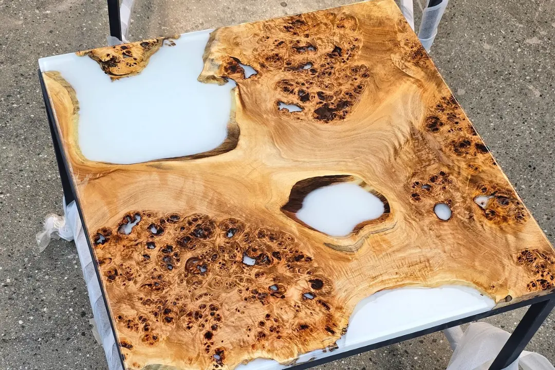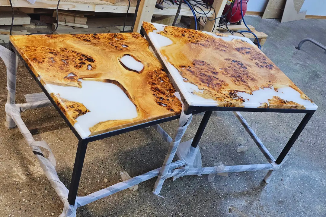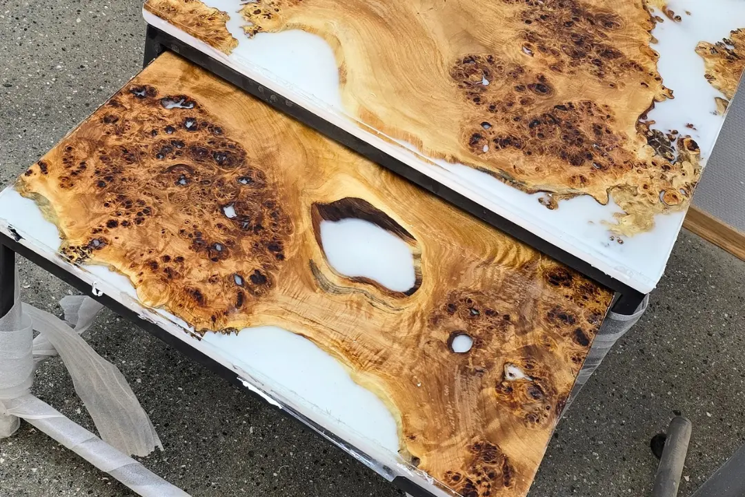Home / PROJECTS / Double Coffee Table – Poplar, Milky White & Crystal Clear Epoxy