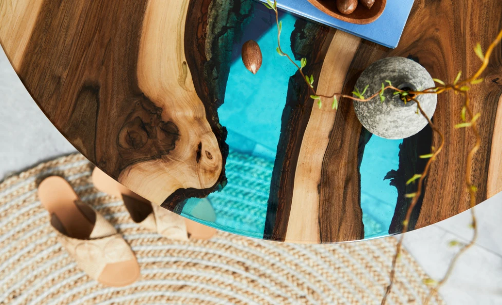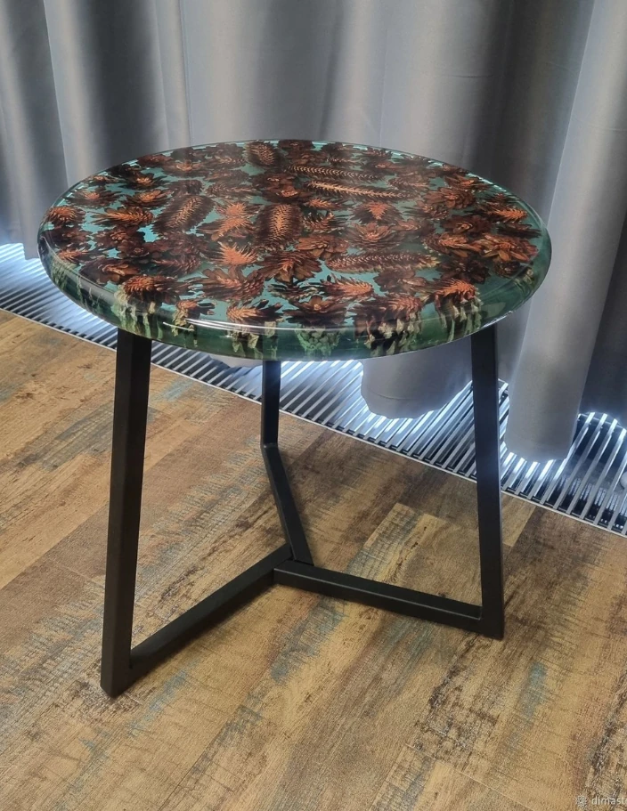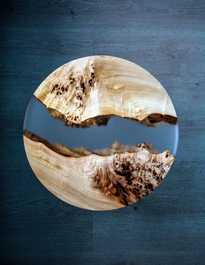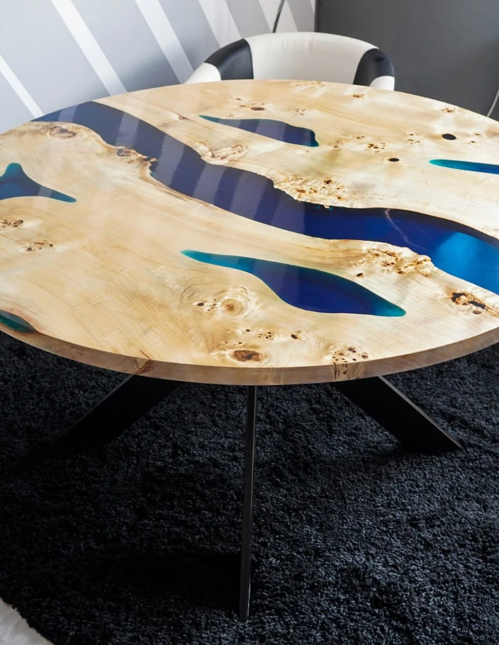 See the catalog for examples and samples of designs for inspiration. At the same time, do not forget that your round dining table with epoxy resin will not repeat any other down to the details, because each tabletop has a unique natural pattern and shape.