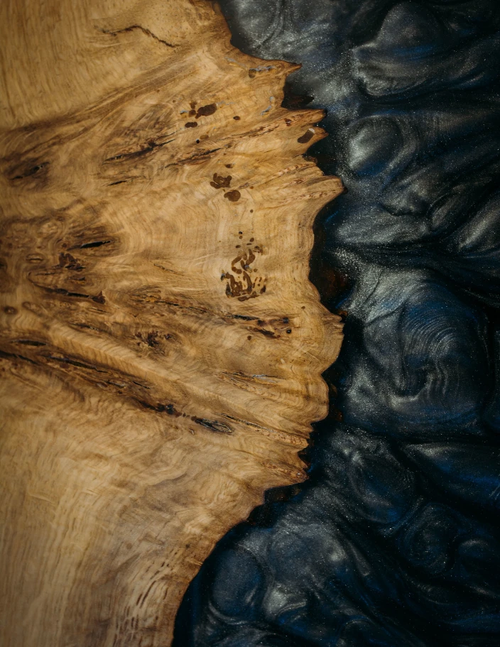 Natural edges highlight the authentic structure and unique character of the wood, creating a timeless expression