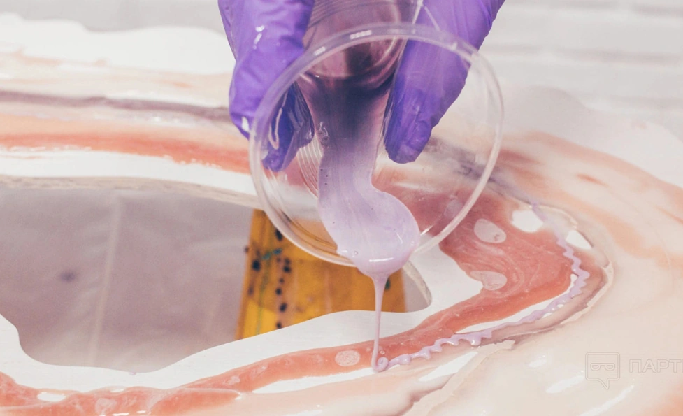 Etterpå påføres et tynt lag (opptil 3 mm) epoksyharpiks på overflaten. Dette garanterer et resultat av topp kvalitet, med en blank og feilfri finish som er umiddelbart merkbar.