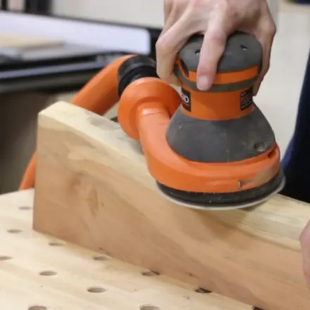 Deretter slipes overflaten med maskin og sandpapir med kornstørrelse 120-150, noe som fjerner små feil og forbedrer teksturen. Valg av verktøy og sandpapir avhenger av ønsket resultat og tretypen